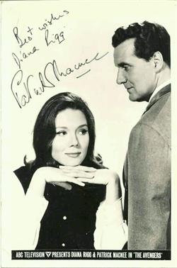 Patrick Macnee's photo on the right and Honor Blackman's photo are autographed on the backside.